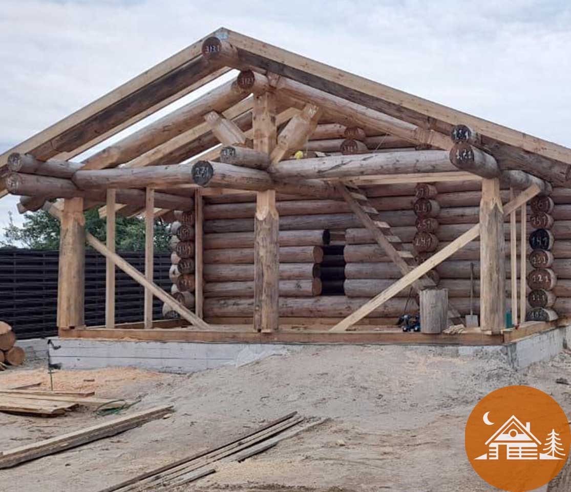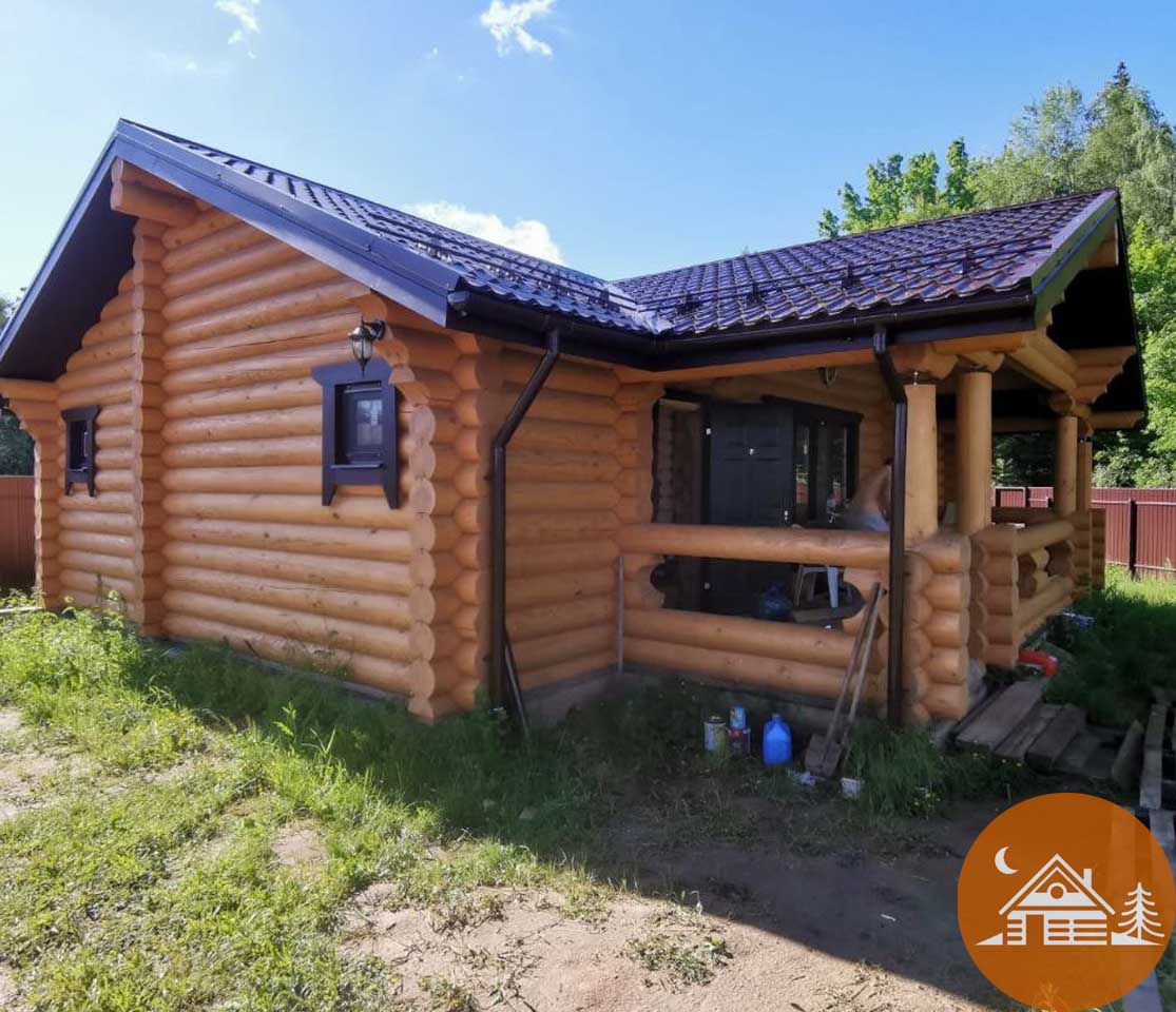 Дом из оцилиндрованного бревна 10 на 12 и баня, Московская обл., июль 2023