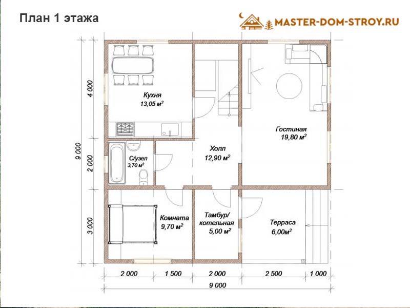 Главная страница » Каталог » Проект дома из бруса №008