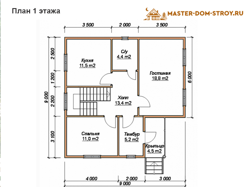 Главная страница » Каталог » Проект дома из бруса №052